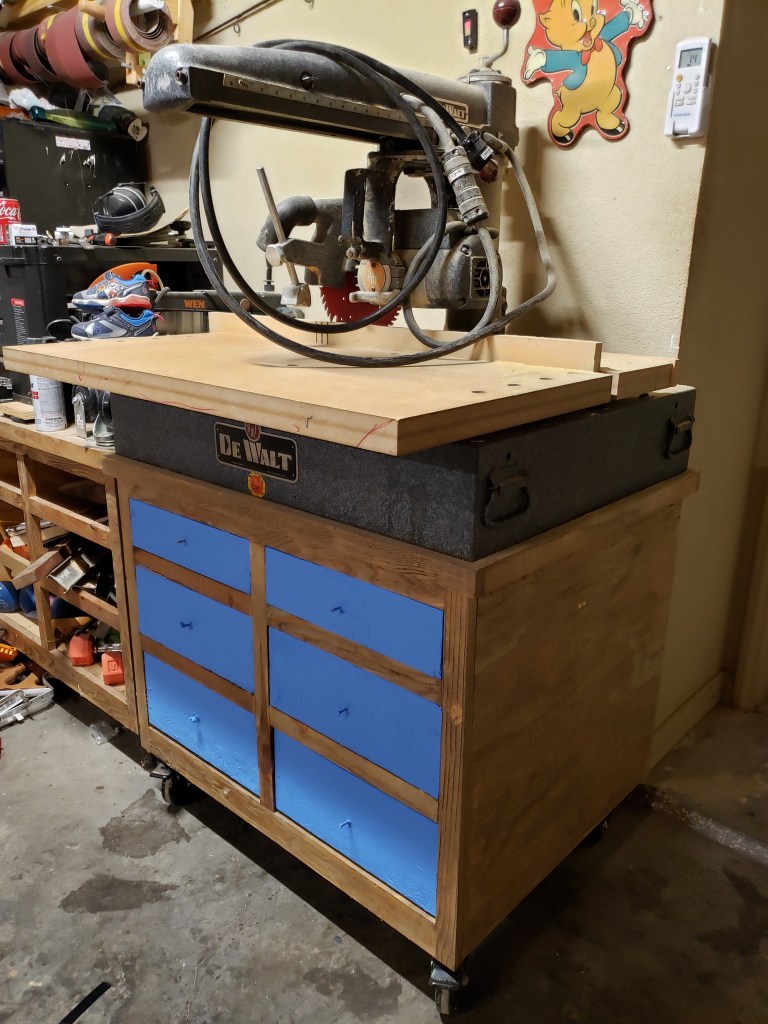 Steadily moving along. Sharpened three saws, sold a dovetail saw and I sold a D-8. Yesterday though, I did something cool for myself. My medium arm Dewalt GA radial arm saw cuts beautifully and I decided to attach the chain drive that came with it. A previous owner had it done and they lined everything up for nicely. It unfortunately takes a couple inches from the crosscut length. So my max is 22 inches.