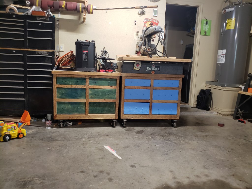 I scored some free osb 1/2 inch plywood. Oddball sized pieces that I had to cut up but I found a project for them. I made some drawers for my rolling ras cabinet. Glued, nailed and painted with with left over from painting my son’s room to seal them. I left space so that I could add some nice faces and knobs later. For now I have functional drawers.