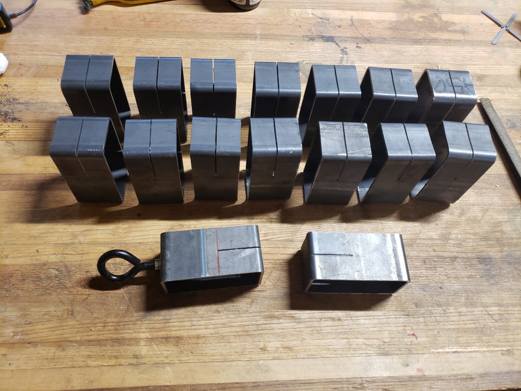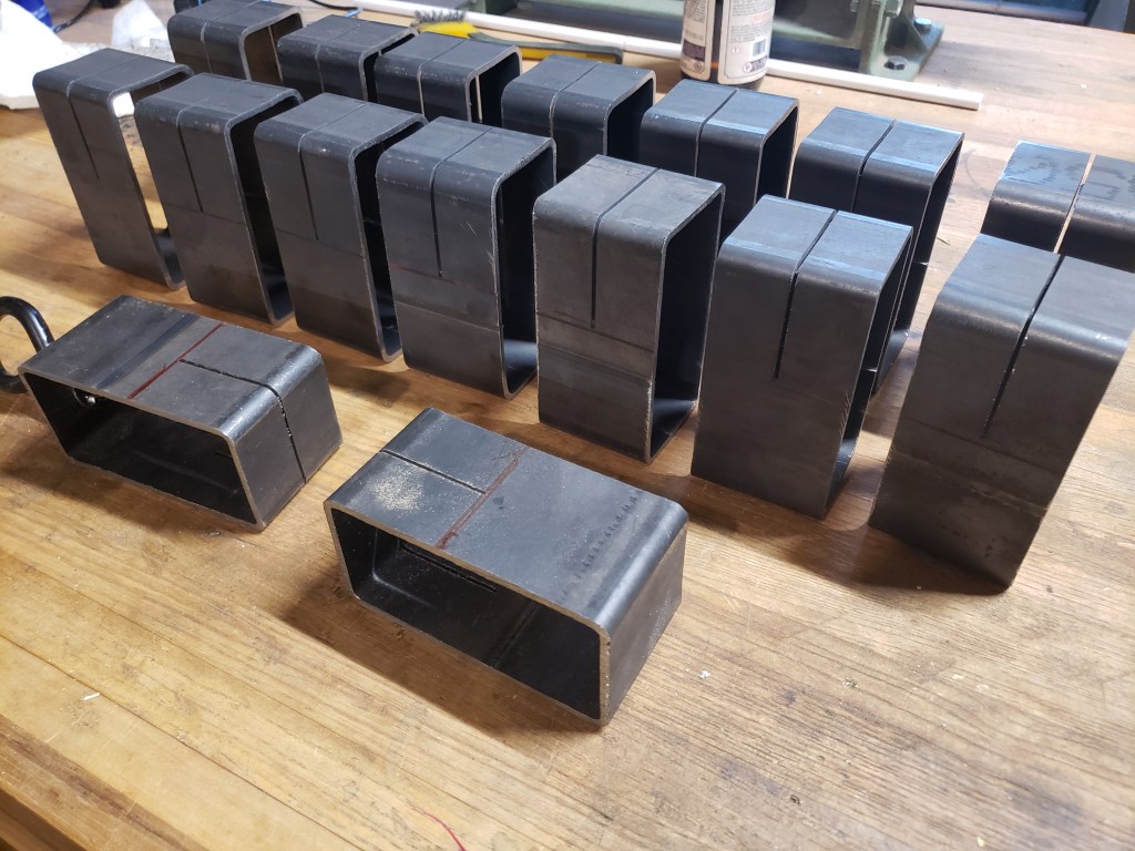 Next week I should have my first sets of hardware sent out. Today I bought some more materials for pins and wear plates. Last couple of days I got more square tubing cut and slotted.