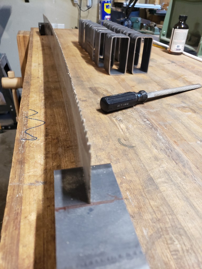 I’ve tackled the longer carrier and bar. That all worked out after some trial and error. Next was the kits. Cutting a slot for the plate isn’t hard but I wanted to be able to make consistent cuts that were straight AND the perfect size for the plates. First attempts were a mix. Too big, too small, blade heated up so the cut was uneven on a perfectlysized cut off wheel setup, ect. Today I finally got another bandsaw blade that has the perfect kerf! Test cuts done and new square tubing got slotted. Plate slips in without excessive movement.