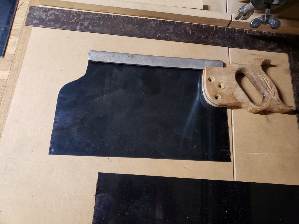 I was asked to make a couple of 22 inch panel saws. Up until now I’ve only made backsaws from scratch. Yesterday I started one using one of Blackburn’s templates. I was asked to make them in the Kenyon style.