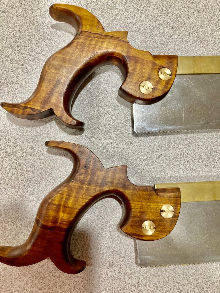 As for saws, I planed down some curly maple adding to my stock of ready to cut handle stock. This was my first time planing small pieces in the planer on a sled with double sides tape. Very happy with the results.