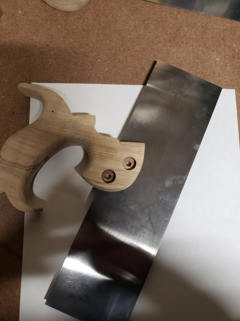 At this point your plate and back are together and you are ready to mark your mortise on your handle. Slide the plate in as far as it’ll go and mark the mortise. (I use a router jig I made up to get this part mostly done, but the way I’m describing is how I did my first several saws)