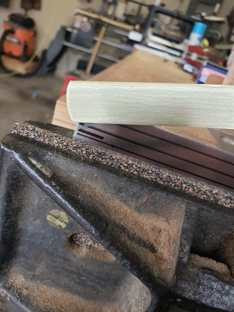 I now use a dedicated bandsaw with a modified blade to get this cut. Even with the bandsaw I occasionally mess up a handle because I get it a little off. This is why you do not cut if completely out yet.