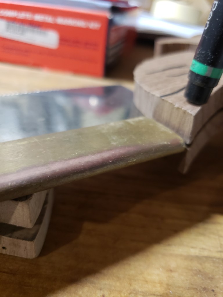 Once it seats firmly and it doesn’t rock and it is nice and level, its time to mark and trim the brass back.