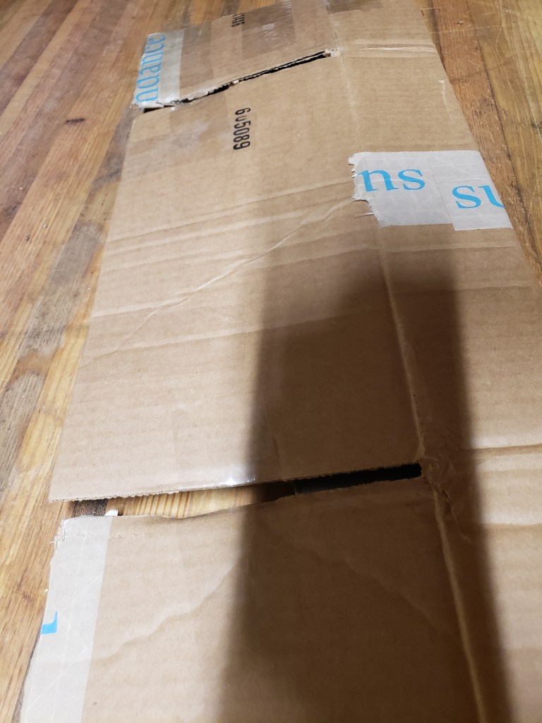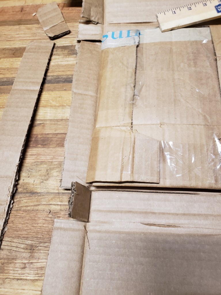 I rarely find full pieces of cardboard without flaps in the middle. This of course gives a bend/weak area. I fold another piece of cardboard over these to strengthen the sheath. I sometimes add tape in the flaps to help pinch the saw in place.
