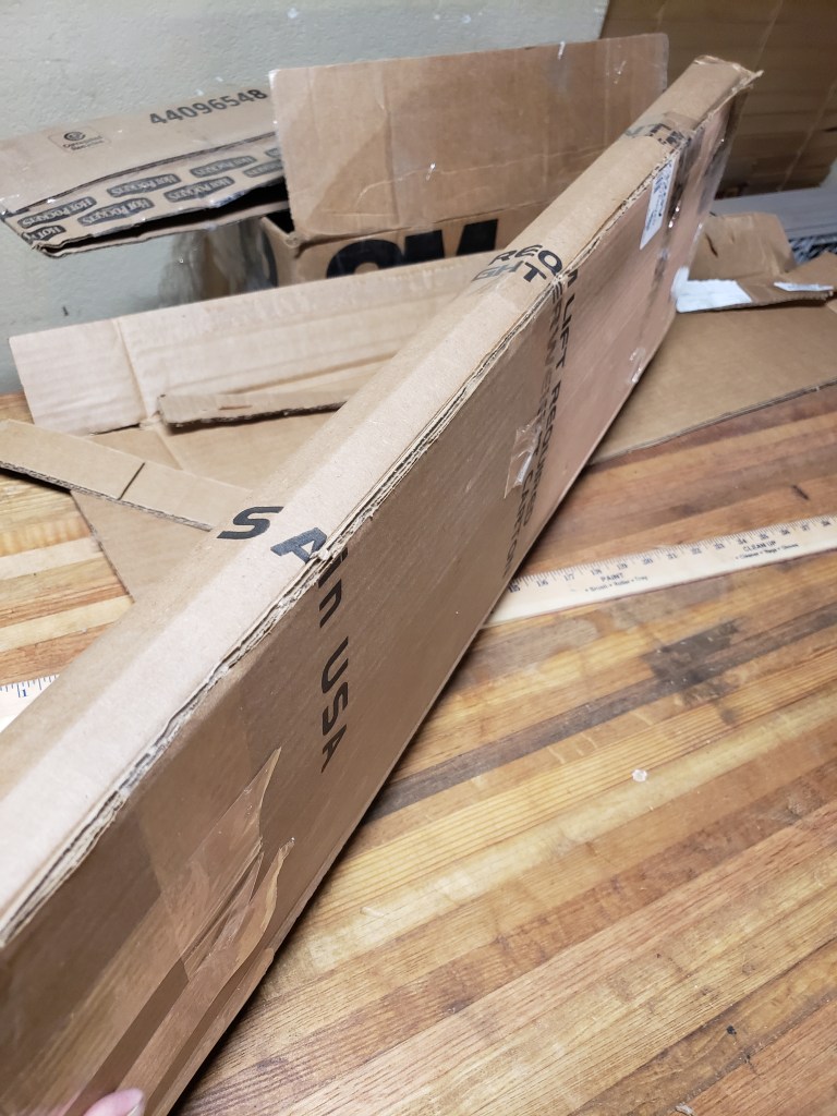 I trim all the excess off and if there is any overlap, I leave it and tape it up. Overlapping cardboard just means more cushion! Once done its a nice square stiff box with a sheathed saw inside sandwiched in a way that if dropped off a delivery truck, it would need to crush your square box, crush the pinched over cardboard and then still have enough force to break your horns.